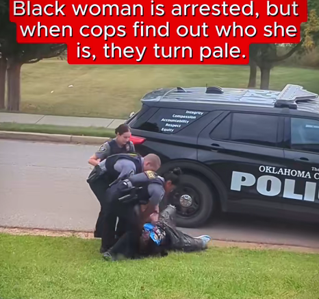 In a dramatic scene captured on video, officers in Oklahoma City are seen arresting a woman on the grass near a police SUV. Initially, it appeared to be a routine detention, but the atmosphere shifted drastically once the officers discovered who the woman really was.