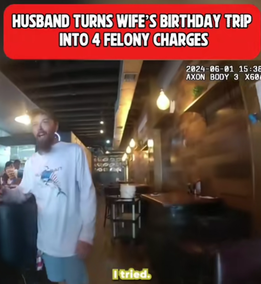 What was supposed to be a joyful birthday trip for a wife quickly spiraled into chaos when her husband’s actions turned the celebration into a night of legal trouble. Instead of ending the day with cake and laughter, the couple found themselves at the center of a police investigation that resulted in four serious felony charges against the husband.