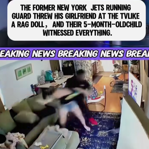 A horrifying incident has shocked the sports world and beyond after disturbing home security footage showed a former New York Jets running guard violently throwing his girlfriend across a room—an attack that unfolded in front of their 5-month-old child. The graphic footage has sparked outrage, reigniting conversations about domestic violence, accountability, and the safety of children growing up in unstable homes.