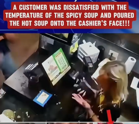 An ordinary day at a restaurant turned into a horrifying scene when a dissatisfied customer lashed out at a cashier by throwing hot soup directly into her face. The shocking incident, captured on surveillance video, has sparked national outrage and renewed conversations about the abuse service workers endure on the job.