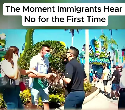 In the video, a group of immigrants approached a booth at a crowded outdoor event, expecting the usual warm welcome. Instead, for the first time, they were told a firm “No.” Their stunned expressions quickly drew attention from bystanders, who couldn’t believe what they were witnessing.