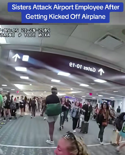 A chaotic scene unfolded at a busy airport when two sisters were removed from a flight and allegedly attacked an airline employee moments later. The dramatic confrontation was captured on security and bodycam footage, quickly going viral online.