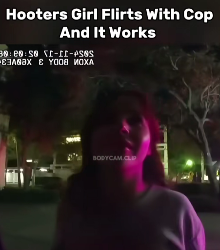 A viral police bodycam clip is stirring debate online after showing a young woman using charm and flirtation to get out of a potential citation — and, shockingly, it seems to work. The footage, titled “Hooters Girl Flirts With Cop And It Works,” has quickly spread across social media, drawing millions of views and igniting conversations about double standards, professionalism, and gender dynamics in law enforcement.