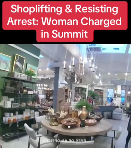 According to the Summit Police Department, store staff had called authorities after noticing the woman concealing multiple small decorative items in her handbag. When employees approached her, she allegedly became defensive and refused to hand over the merchandise. By the time officers arrived, she had already made her way toward the exit, insisting she “didn’t take anything.”