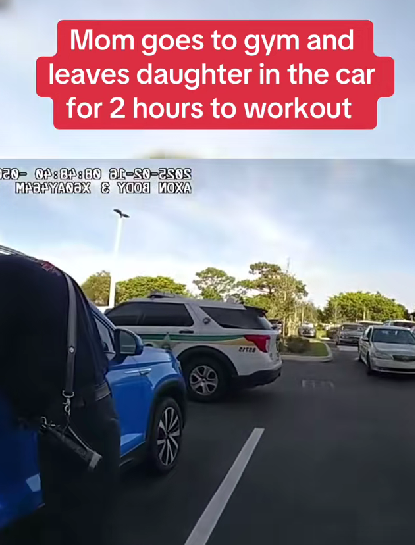 Police bodycam footage has sparked outrage online after a woman allegedly left her young daughter locked inside a car for nearly two hours while she went to work out at a local gym. The shocking incident unfolded in a parking lot on a warm afternoon, where temperatures inside the vehicle reportedly soared well above 100°F (37°C).