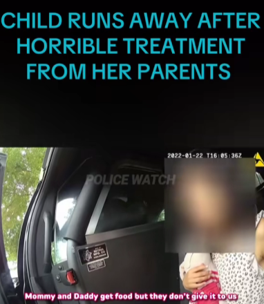 A heartbreaking story has emerged after a young girl was found wandering alone, telling police she had run away from home because of the cruel treatment she faced from her parents. The footage, captured by an officer’s body camera, shows the terrified child sitting in the back of a patrol car, clutching a drink as she quietly reveals the horrors she experienced.