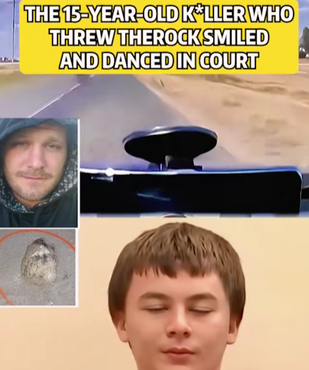 A tragic case that began with a senseless act has captured nationwide attention after a 15-year-old boy accused of ending a man’s life by throwing a rock from an overpass appeared in court—smiling and even dancing during the hearing.