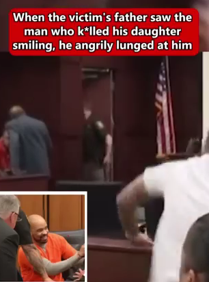 A courtroom turned into a scene of raw emotion and heartbreak when a grieving father lost control after seeing the man who klld his daughter smiling during sentencing. The powerful moment — captured on video — shows the unbearable pain that words can’t describe, as a father’s grief collided with a killer’s chilling lack of remorse.