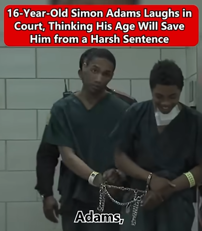 In a tense courtroom moment that quickly spread across social media, 16-year-old Simon Adams was seen laughing as he was escorted in for sentencing — confident that his youth would shield him from serious punishment. But by the end of the hearing, the teen’s smirk had vanished as the judge delivered a ruling that no one in the room expected.