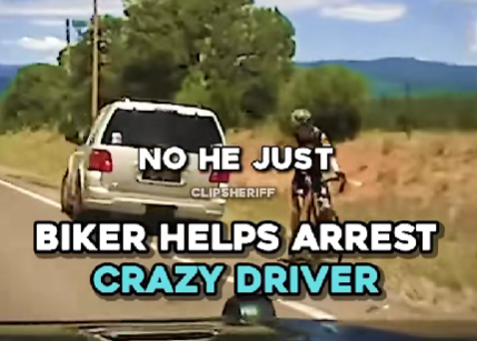 The incident took place on a quiet two-lane road, where a silver SUV was seen swerving across lanes, narrowly missing other vehicles, and nearly colliding with a group of cyclists. Officers responding to multiple 911 calls were already en route when one cyclist — who happened to be riding nearby — decided to step in and assist.