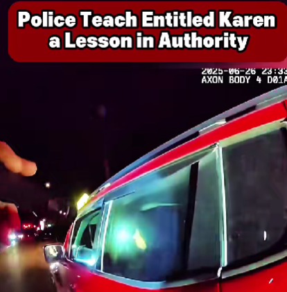 A dramatic late-night traffic stop has gone viral after footage showed officers confronting an irate woman — dubbed “Karen” by online viewers — who refused to comply with police orders and insisted she was “above the law.” The incident, captured on bodycam footage, unfolded on a busy street and quickly turned into a heated standoff that’s now sparking both laughter and debate online.