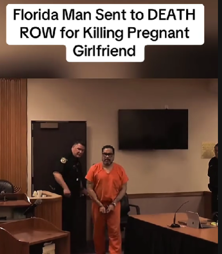 The man, identified in court records as Ethan Morales, stood motionless in an orange jumpsuit as the judge read the sentence aloud. Behind him, officers stood alert while family members of the victim wiped away tears. Morales, who had been found guilty of ending the life of his pregnant girlfriend, reportedly showed little emotion at first — until the gravity of the sentence sank in.