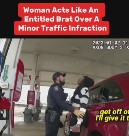 A routine traffic stop at a local gas station has turned into an online spectacle after a woman’s fiery reaction to a minor traffic citation was caught on a police body camera. What began as a standard procedure quickly spiraled into a heated exchange that’s now sparking debates across social media about attitude, entitlement, and the importance of staying calm during encounters with law enforcement.