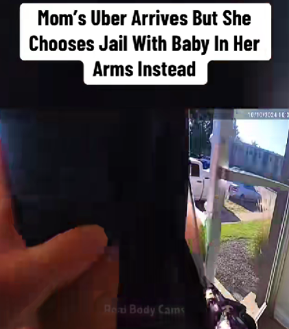 A moment of heartbreak and quiet strength unfolded when a mother, holding her baby close, made the painful decision to surrender herself to police rather than flee when her Uber arrived. The emotional footage, captured on a body cam, shows a young woman choosing accountability — and love — even as her world seems to fall apart.