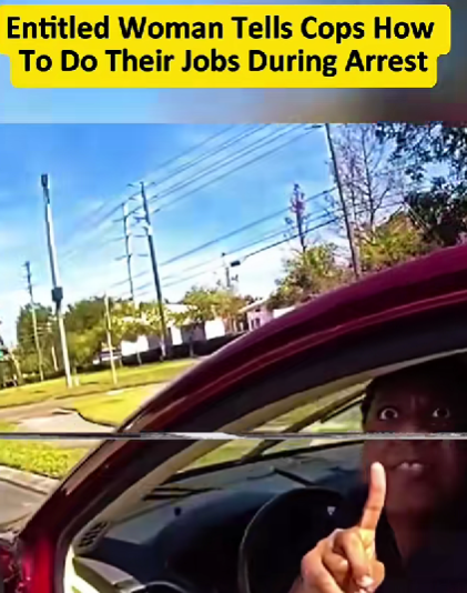 The video begins with officers approaching a red sedan during what appears to be a routine stop for reckless driving. As one officer politely asks the woman for her license and registration, she immediately becomes defensive. “You don’t have the right to pull me over!” she snaps, pointing her finger at the officer. “I know the law better than you do.”