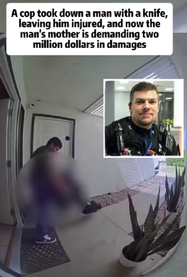A heated confrontation between a police officer and a knife-wielding man has sparked major public debate after bodycam and doorbell footage revealed the tense moments leading up to the incident. The man’s mother is now demanding $2 million in damages, claiming her son was wrongfully injured and that the officer used unnecessary force.