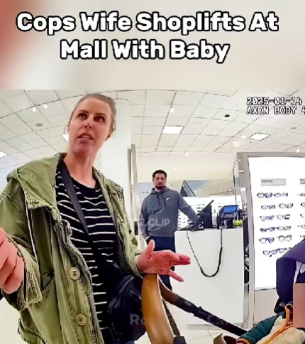 A shocking scene unfolded at a local shopping mall when a woman — later identified as the wife of a police officer — was detained for allegedly shoplifting while pushing her baby in a stroller. The incident, captured on mall security cameras and police bodycam footage, has sparked widespread discussion about accountability and public trust.