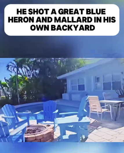 A Florida homeowner is facing public outrage and possible federal charges after allegedly shooting and killing two protected bird species — a great blue heron and a mallard duck — right in his own backyard. The shocking incident has drawn attention from wildlife officials and animal advocates, who are calling for swift legal action.