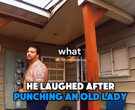 The bodycam footage shows the man shirtless, standing on a porch with a smirk as officers approach. One of the officers asks him, “What happened here?” but instead of responding seriously, the man shrugs and lets out a laugh. That reaction infuriated both viewers and officers on the scene. The clip’s caption — “He laughed after punching an old lady” — only added to the outrage online.
