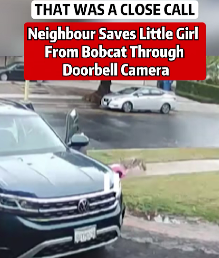 A quiet suburban neighborhood turned into a scene straight out of a wildlife thriller when a little girl came face-to-face with a wild bobcat — and the entire terrifying moment was caught on a doorbell camera. Thanks to a quick-thinking neighbor, what could have ended in tragedy turned into a story of bravery and lightning-fast reaction.