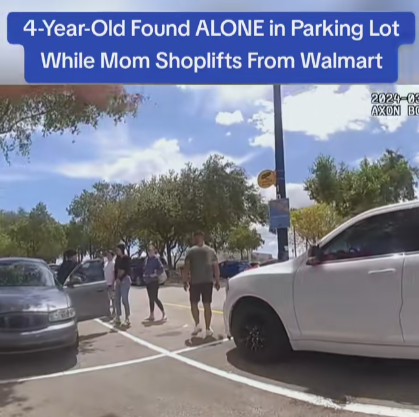 A shocking scene unfolded outside a Walmart store when a 4-year-old child was found alone and crying in a hot parking lot, while the child’s mother was allegedly inside attempting to shoplift. The disturbing incident was captured on a police bodycam, showing officers rushing to the scene after a passerby called 911 upon noticing the unattended child.