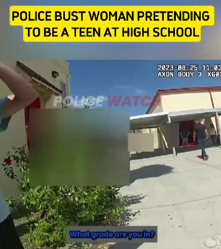 Police bodycam footage released later shows officers confronting the woman outside the school building. When asked what grade she was in, she hesitated before giving an unclear answer—raising immediate red flags. Officers then verified her identity and discovered she was almost 30 years old.