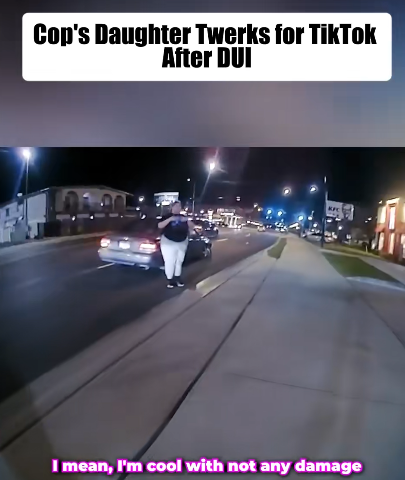 A traffic stop took an unexpected — and bizarre — turn after police arrested a young woman for driving under the influence, only to discover she was the daughter of a fellow officer. What shocked viewers even more was what happened next: moments after the incident, she was seen recording a TikTok video and twerking by the roadside, completely unfazed by the situation.