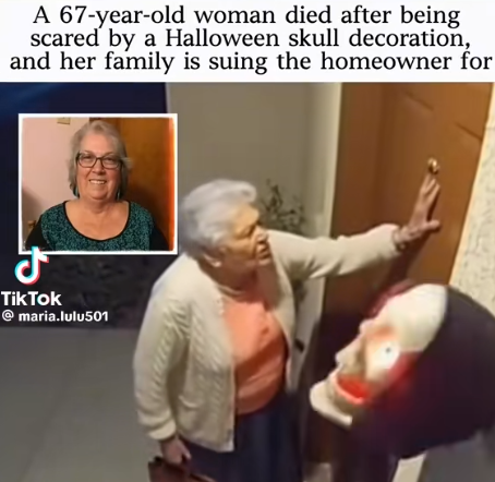 Her family has now filed a lawsuit against the homeowner, claiming negligence and arguing that the decoration was excessively loud and placed too close to the entryway. “We understand it was Halloween,” said a relative, “but there has to be some level of responsibility when setting up frightening displays.”