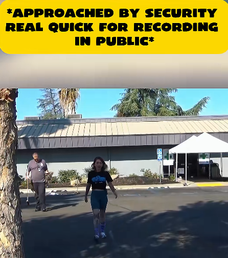 The video’s caption — “Approached by security real quick for recording in public” — perfectly captures the irony of the situation. The clip, which has amassed millions of views, has become a talking point for online communities discussing First Amendment rights and freedom of expression in public spaces.