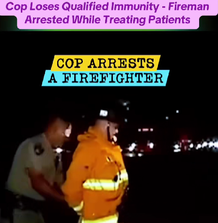 In a case that has reignited debates over authority and accountability, a police officer has lost qualified immunity after arresting a firefighter who was actively treating victims at the scene of a serious traffic accident. The shocking moment — captured on dash and bodycam footage — shows a firefighter in full uniform being handcuffed while still wearing his helmet and reflective gear.
