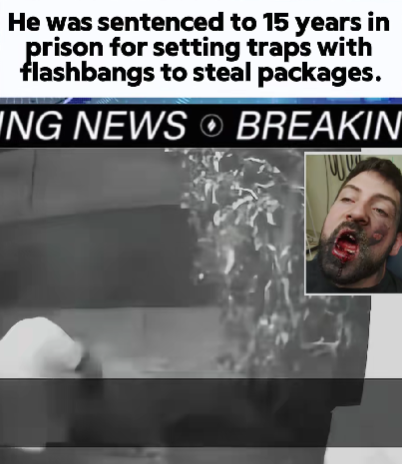 In a case that sounds like something straight out of an action movie gone wrong, a 32-year-old man has been sentenced to 15 years in prison for setting dangerous traps using military-grade flashbangs to steal packages from porches. What started as a bizarre crime spree targeting delivery boxes quickly spiraled into one of the most reckless theft cases authorities have ever seen.