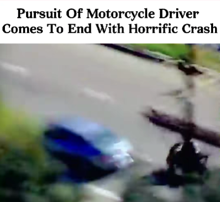 The footage shared online shows the motorcycle entering a busy stretch of road moments before the crash. As the rider attempted to overtake another vehicle at extremely high speed, they lost control. The motorcycle swerved, skidded, and violently struck an object near the roadway, sending debris flying and bringing the chase to a sudden, horrifying stop.