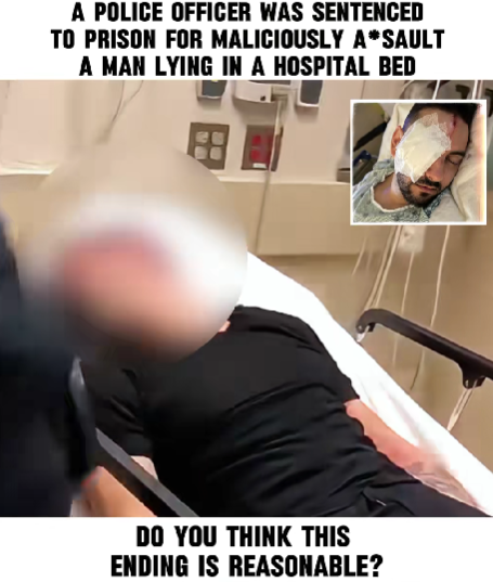 A disturbing incident inside a hospital room has now become the center of a nationwide conversation about accountability, power, and justice. A police officer, once trusted to protect the public, has been sentenced to prison after authorities determined he maliciously a*saulted a man who was lying defenseless in a hospital bed. Bodycam footage and witness statements played a crucial role in the case, revealing a confrontation that left viewers stunned and deeply troubled.