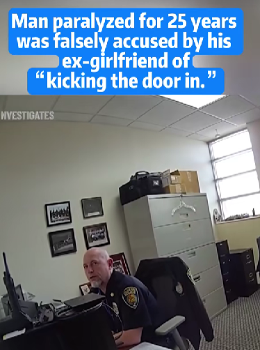 The unbelievable situation unfolded when his ex-girlfriend filed a report stating he had damaged her door during an argument. Officers, following procedure, began investigating the allegation — but something felt off from the moment they arrived. In the police bodycam footage, you see the confusion spread across the officer’s face as he reads the statement, flips the pages again, and tries to understand how a man paralyzed for decades could physically perform the act he was being accused of.