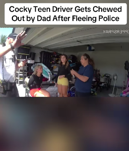 A viral police bodycam clip has taken over social media after a teenage driver fled during a traffic stop — only to face an even tougher moment when she arrived home and had to deal with her furious dad. The footage, which shows officers talking to the girl inside a garage while family members stand nearby, has sparked a mix of shock, amusement, and life-lesson commentary online.