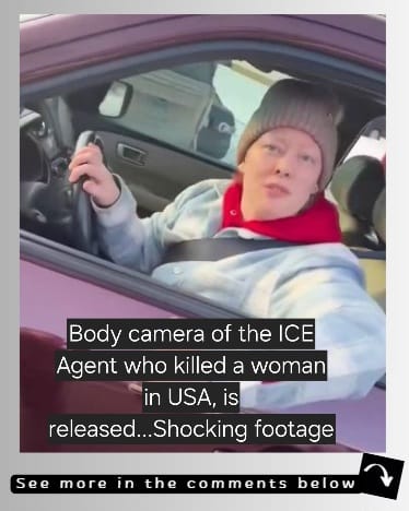 The footage — described as captured from the perspective of the agent involved — shows Renee Nicole Good, 37, sitting in the driver’s seat of her maroon SUV on a residential street. At one point, she speaks calmly to the approaching agent, at times saying “That’s fine, dude… I’m not mad at you,” before the situation escalates.