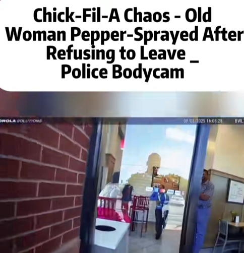 What was supposed to be an ordinary afternoon at a Chick-fil-A turned into a scene of chaos, disbelief, and pepper spray — all captured on police bodycam. Customers in the restaurant could hardly believe what they were seeing as officers moved in to remove an elderly woman who had flatly refused to leave the establishment.