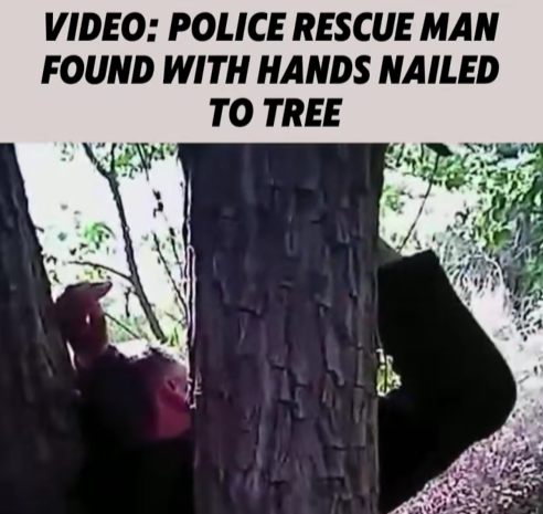 Police officers responding to a distress call made a horrifying discovery deep in a wooded area: a man with his hands n*iled to a tree. The shocking footage, captured on bodycam and now circulating online, shows the moment officers rushed in to save the victim from what could have been a fatal situation.